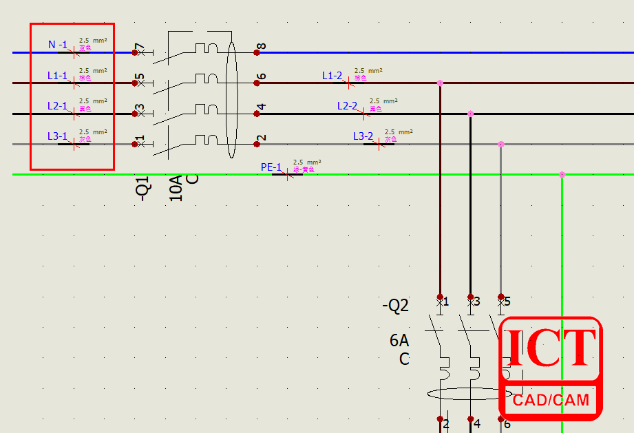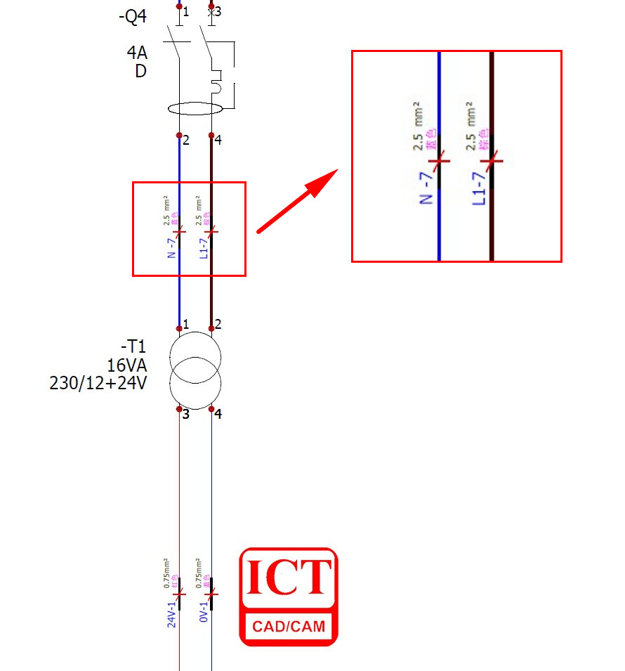 在原理图的设计过程中,都不可避免的会涉及到线路中线号的问题,除了需要显示线号外,还需要显示电线的截面积信息,电线颜色等,一个简明的线号标签可以提高工程师看图的效率,减少出错的概率。SOLIDWORKS Electrical可以帮助我们快速的实现这些电线信息的显示,如图1所示。