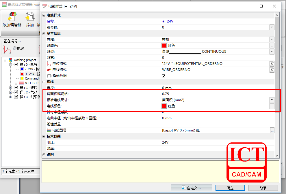 1、定义工程中电线样式的属性