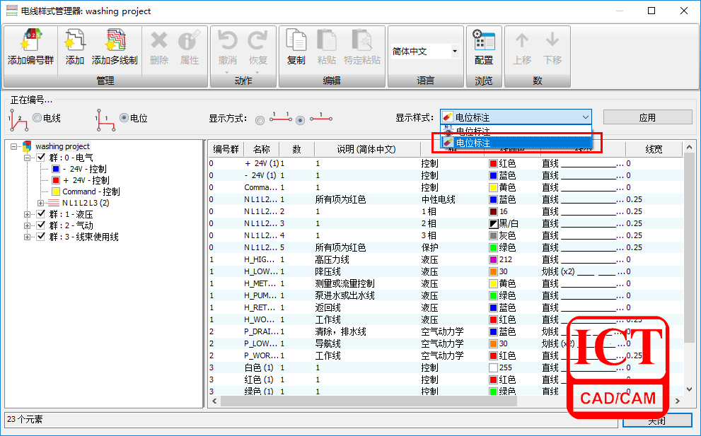 3.3 通过电线样式管理器修改显示样式为第二个“电位标注”,并点击 “应用”如图9所示;